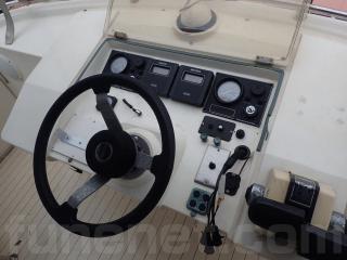 ●フライングブリッジはゆったりと広々とした印象を受けました。また操船席には計器類などが集結しており、またオーニングも装備していますので快適なクルージングが出来るようになっています。