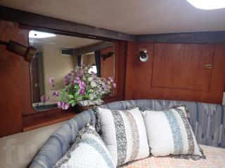 クルージングや海上でのパーティーなど楽しめる大変人気の高いサロンクルーザーです。現オーナー様は、年に3回程、クルージングに出る程度で、たまに船に来てはエンジンを回して過ごす程度でご使用されているそうです。