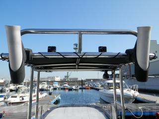 幅広 2.50mをベースにセンターコンソールや程よい高さのリーニングシートが設置され、キャスティングの際にも邪魔にならない小さ目のオーニングで和製 スポーツフィッシングボートに仕上げられています。