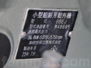 ◆船外機は平成23年7月製造のホンダBF50D(4サイクル50馬力 型式:BBEJ)で、検査手帳の連続最大出力は50PS/5,750rpmとなっています。