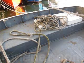 オーナー様にお聞きした内容では、この艇の良い所は、力がありビットもあることから曳き船としての使用も可能です。また、デッキも広いので、荷物もたくさん載せることも出来るそうです。
