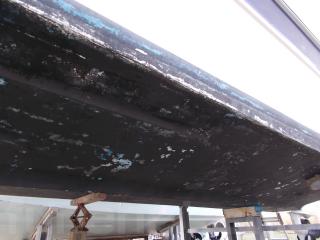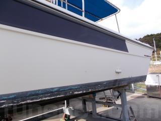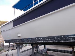 マリーナのクレーンで上げ下げした時のスレや、船台に乗せた時にできたキズなどは軽微にありますが、気になるようなものではありません。