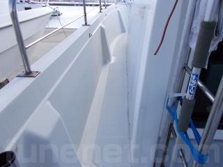 ハルは2年ほど前にバフ掛けをされていますし、マリーナに上架保管されていますので変色等も少なく、FRPの光沢もありきれいです。