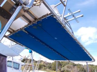 オーニングとレーダーアーチは一体式になっていますので、トラックで運搬する時には、レーダーアーチの上の部分をカットして高さ調節をする必要があります。