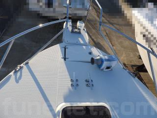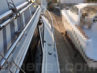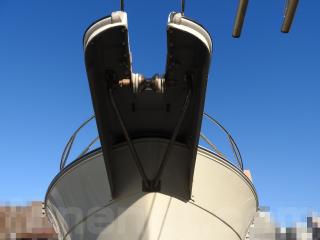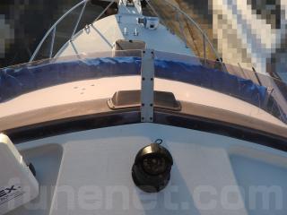 ◆バウパルピットも硬く取り付けられています、電動のアンカーローラーあります、ロープ収納ハッチの蝶番が壊れています。