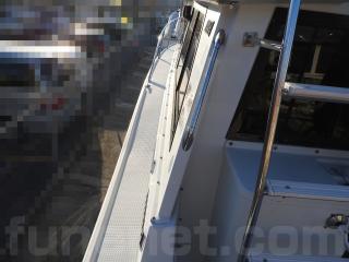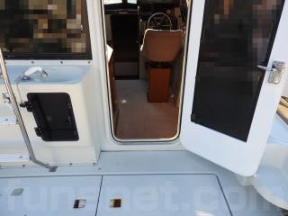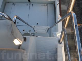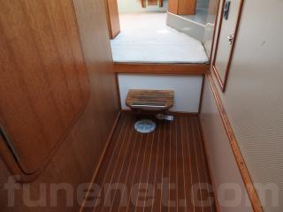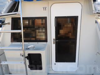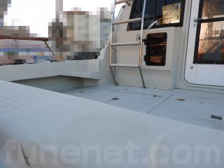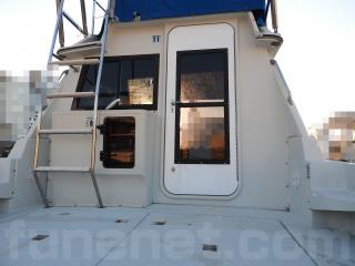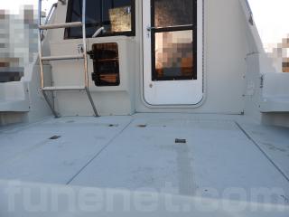 ◆キャビンのリヤドアは入りやすい高さです、左舷にFBに上るタラップが有ります。