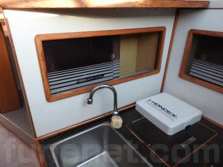 ◆バウバースにスカイライトハツチが有り明るい感じです、ハッチからの水漏れは無いように見えました。