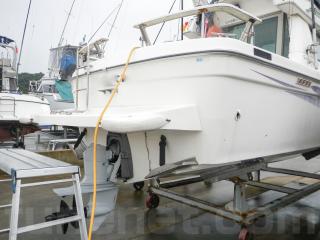 取材時は上架状態での取材でしたので、船ネットドットコムでは走行状態の確認、航海計器の作動確認等は一切行っておりません。ご見学の際にはご試乗頂き、全ての事項をご確認の上、ご購入をお決め頂きますようお願い致します。
