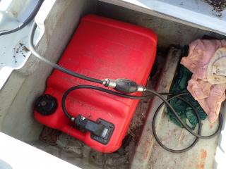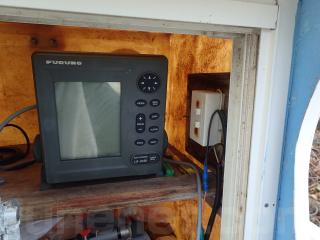〇デッキ中央には、センターコンソール(収納入れ)があり。主に魚探(フルノLS-6100)や携帯が収納されている様です。