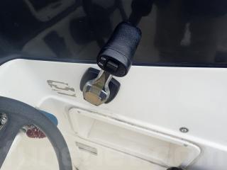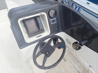 〇操船席は、シンプルな造りです。魚探は、ありますが電源スイッチが固着していましたので、使用不可です。