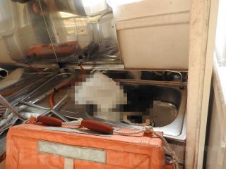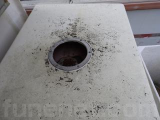 ◆アフトデッキは燃料タンク、バッテリーを収納しています、ハッチ内は少し雨水が溜まっていました。