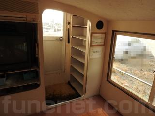 ◆室内前方正面にテレビを置いています、その横が靴置き棚です、正面左右から入場します、室内は椅子は無く座りです。
