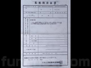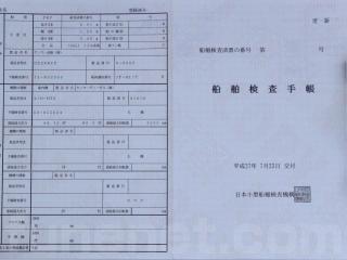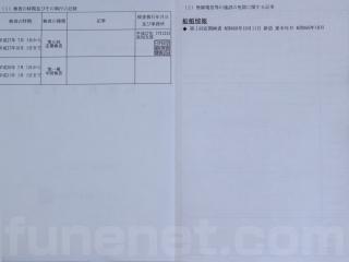 ◆この艇の正確な情報をお伝えする為に船舶検査証書と検査手帳を個人情報を伏せた状態で掲載しています。船体やエンジンの型式、定員、用途、登録上の船体寸法、航行区域、航行上の条件、進水年月日、検査の状況などをご確認下さい。