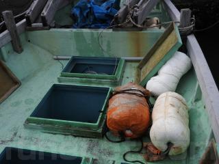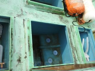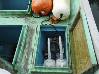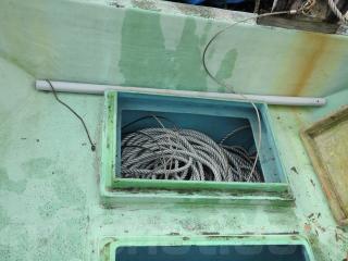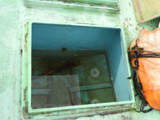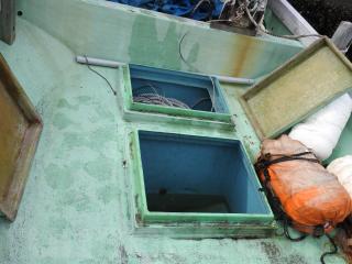 ◆フロントデッキは物入れ3間、大型の生簀2間有ります、各ハッチは硬く良好な状態です。