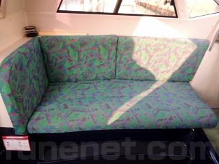 状態◆23フィートのマルチボートですので、キャビン内は、ご家族・ご友人方とくつろいで頂く事ができるスペースは主に、左側3名掛けシートと、右入口の1名掛けシートと、前方バウバースとなっております。