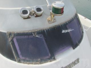 ブリッジ前のアクリル窓を補修されたコーキングの痕があります。