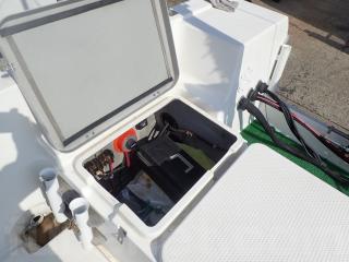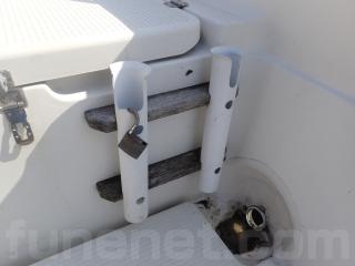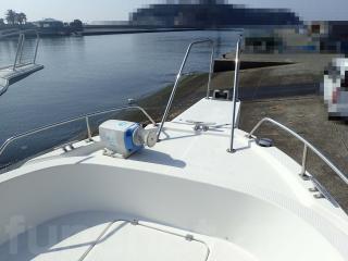●釣りなどにご使用される方には、使い勝手が良いウォークアランドタイプです。オーナー様も釣りをメインとされる船ですので、船首2カ所と船尾2カ所とロットホルダーが装備されて、またスパンカーも装備されていますのですぐに釣りに行けます。