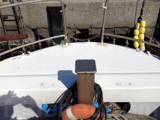 *右舷側、アンカーレールのステンレスローラーは取り外します。