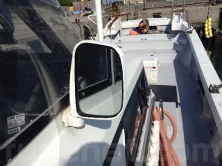 左右舷にあるサイドミラー、また、肘かけ付きのドライビングシートにて、長時間の操船も疲れにくいです。