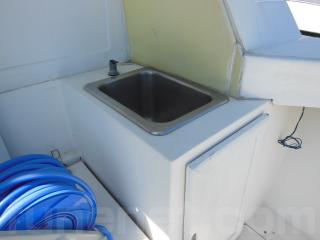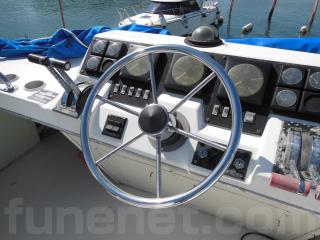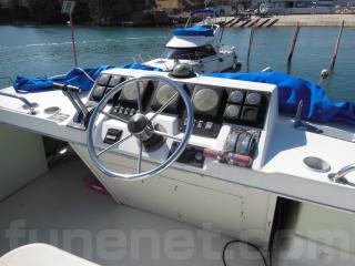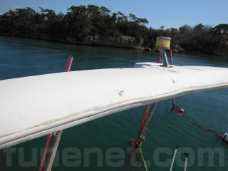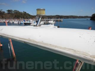 取材時は海上係留保管状態での取材でした。船ネットではエンジンの始動や走行状態の確認、船底の確認等は一切行っておりません。ご見学の際には、全ての事項をご確認の上、ご購入をお決め頂きますようお願い致します。