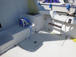 また、アフトデッキにはデッキシャワー、ロッドホルダー、陸電設備、スイミングステップ、スイミングラダー等があります。