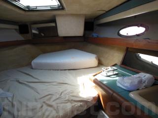 前方はバウキャビンになっています。大人2人が横になることが出来るベッドが装備されています。