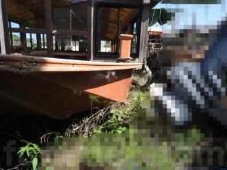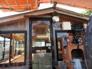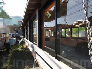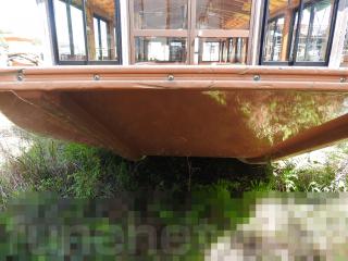 ◆船底は砂利などで擦れて小傷は有りますが、船体は固いようです、各窓も割れも無く問題はないようです。