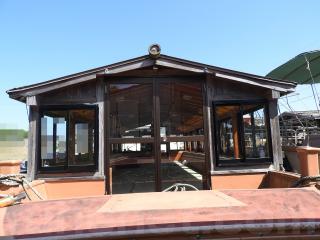 ◆部屋の内高は約165cm~170cm位です、後方にて操船しますヤマハ船外機4ストローク115馬力が付いています、全面がガラス窓ですから視界は良好です。