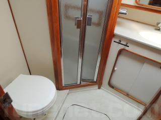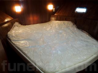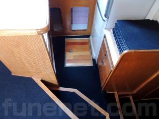 ◆船首側には、右手にはシングルにベットx2のツインゲストツーム、前方にはダブルベットのオーナーズルーム、左手には電動個室マリントイレ&シャワールーム。