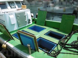 ◆アフトデッキ後方に清水タンクを作り置きしています、小型のイケスが1間あります。