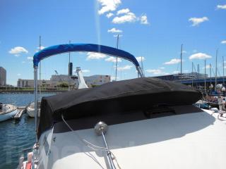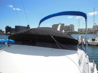FBにはビミニトップの装備もあり、夏の日差しなどにも対応できるようにしています。FBカバーは2017年9月に張替えを行っています。