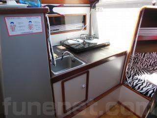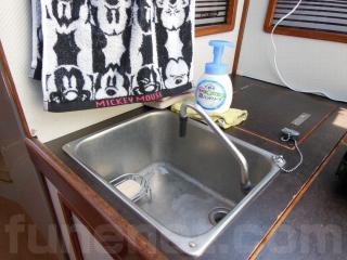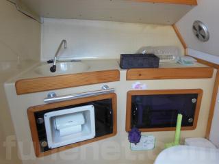 船内にはエアコン、手動マリントイレ、シンク、IHコンロ、TV等も装備されています。