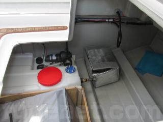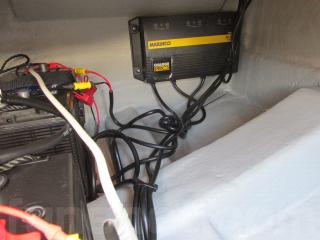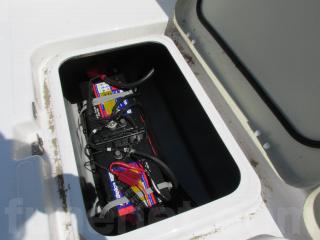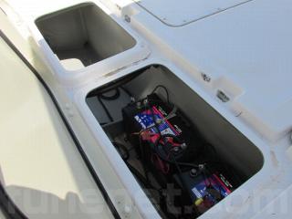 左舷ハッチの下はエンジン用とアクセサリー用のバッテリーです。