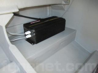 ゲストシートの下には2500Wのインバーター、清水タンク60Lがセットされています。