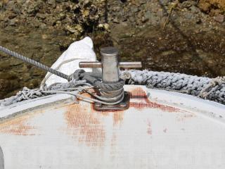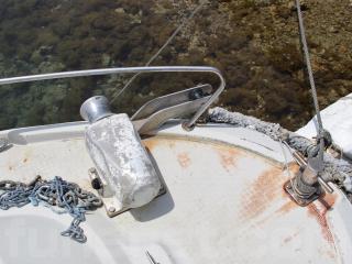 ◆ゲルコートは所々、ロープなどの擦れによる剥げや硬い物を当てたような欠け、錆による汚れなどがありますが、たちまち係留や航行に支障があるような大きな傷や割れなどは無いように見受けられました。