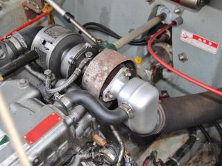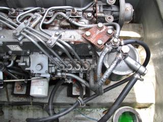 ◆エンジンはヤンマーのインタークーラーターボ付き4気筒ディーゼルエンジン、4JH-TZ2を搭載しています。連続最大出力は48PS/3550rpmです。取材時のエンジンアワーは約3323時間でした。エンジンは普段、最寄りの業者さんの手でメンテナンスをされているようです。