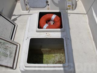 ◆この艇はミッドシップ(中央)にストレージとイケスがあります。ストレージは深く、それなりの収納力があります。なお、イケスはその後方にあります(写真No,22)がスカッパーの蓋がもしかすると無いかもしれません。(オーナーさんに探してもらっています。)