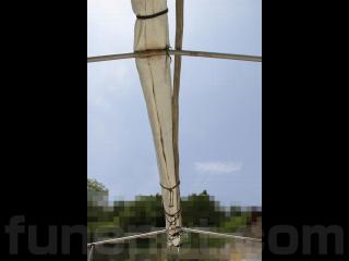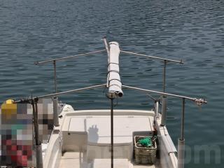 ◆船体外観の大きな特徴としては「屋形」の巻取り式オーニングが備わっている点です。なお、取材時にテント生地を広げて確認はしておりませんが、オーナー様曰く破れなどは無く問題無いとの事でした。