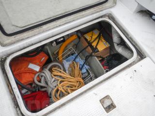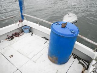 アフトデッキ下はエンジンを降ろしたためスペースがあり、重量も軽くなっているので燃料タンクを増設してあります。