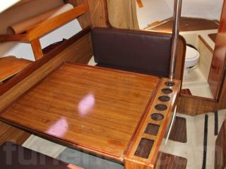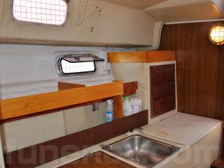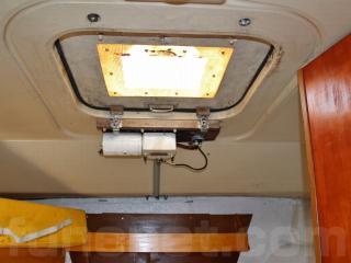 ◆コクピットは大きなスカイライトハッチが装備され、開放感があり明るいです。装備としてはコンパス、Raytheon SPORTPILOT(オートヘルム)、古野のGPSプロッターが備わっていますが、GPSプロッターは電源は入るものの液晶の表示が不良でした。オートヘルムはおそらく動作すると思われます。