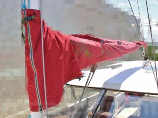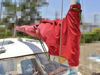 ◆メインセールは広げて確認はしていませんが、この艇をメンテナンスされていた業者さんによりますと、破れなどは無く、航行に問題は無いとの事です。なお、メインセールはあえてフット長の短いやや小さめのセールを装着されていました。