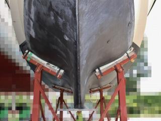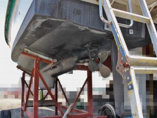 ◆この艇はかつて係留保管をされていた事もありますが、現在のオーナー様になってからは陸上保管ですので船底もしっかり見ていただける状態です。なお、船底も特に航行に影響があるようなダメージは無いように見受けられました。また、現在は上架保管用の塗装が施されています。