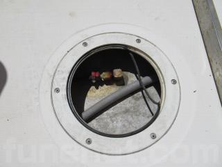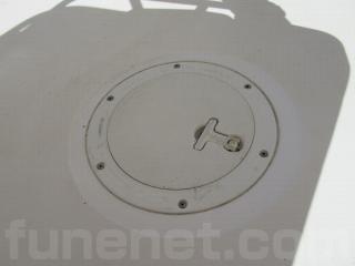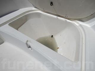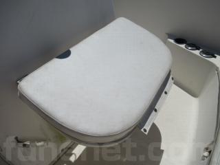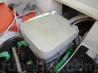 操船席の裏側には手動式トイレの装備もあります。
