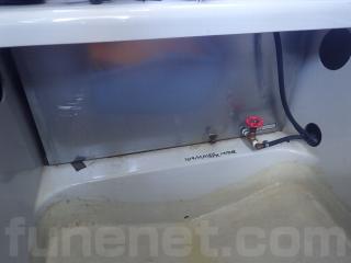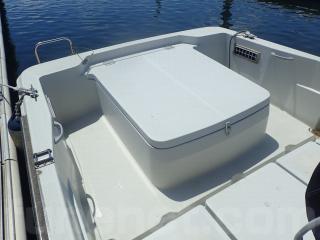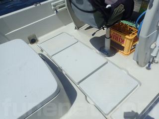 ・操船席後ろのハッチは、収納スペース用とイケスがあります。イケス船底部分のスルハル部分に多めにコーキングが塗られていますが、上架した際に、一度、取り付けをやり直しすれば、漏れの問題ないようです。