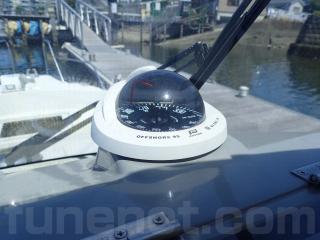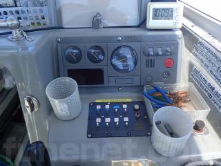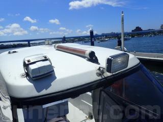 ・ハードトップタイプで、非常に操船席からの視界も良く、操船席周りは、コンパス・GPS魚探・計器類、ステレオが集結されています。また、天井にはスカイライトハッチがあります。