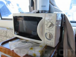 船内には家庭用エアコン、TV、DVD、電動マリントイレ、シンク、電子レンジ、冷蔵庫等も装備されています。