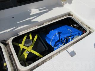 主だった装備品はアンカー、アンカーウィンチ、デッキライト、フェンダーホルダー、ロッドホルダー、アウトリガー、スイミングステップ等が装備されています。