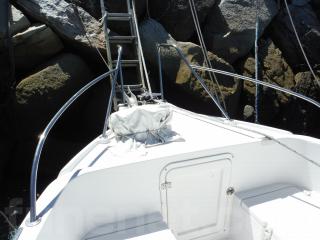 ウォークアラウンド艇ですので、前後の行き来もし易く、前部からの乗り降り、釣行などに非常に便利です。