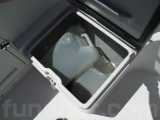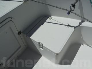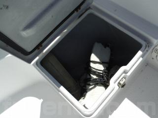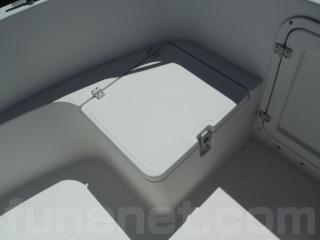前部の収納BOXは着座しての釣行、航行時のシートとしても使用出来ます。
