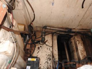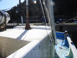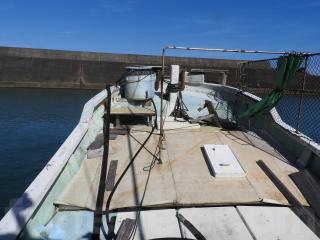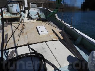 ◆デッキは全体に良好に感じました、但し、綱取り立つ付近のどこかわかりませんが、雨水が入るところがあるようです、水が舵場に入りそこから機関場に流れて溜まるようです、この船を良く知る船大工さんに相談したところ補修は出来るとのお話でした。《但しお引渡しは現状のままですのでご承知置きください》